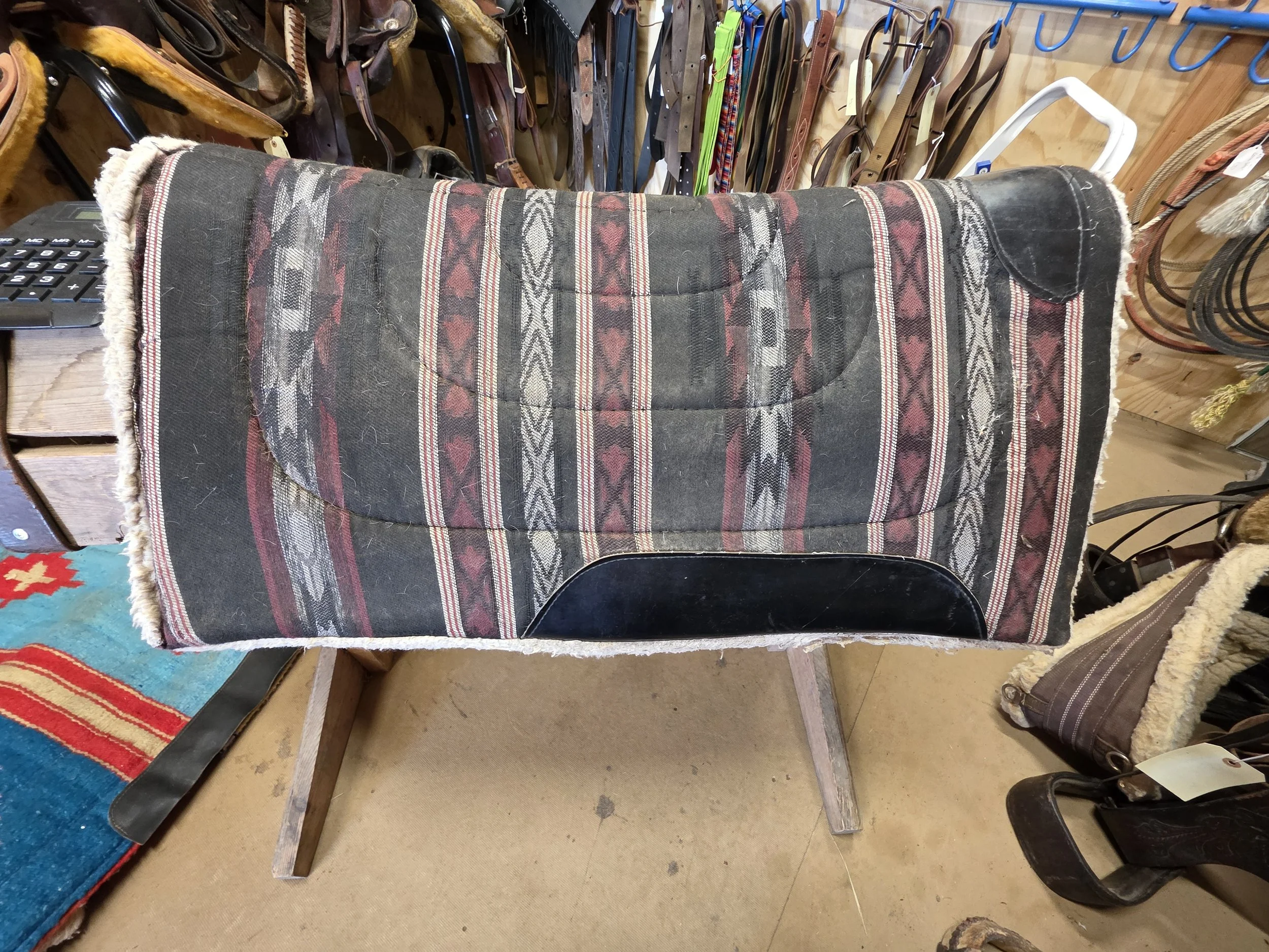 Saddle Pads › SP16 Image 1 of 2 Image 2 of 2 SP16 $25.00 Red and Black Santa Fe Style Saddle Pad32”x30” Add To Cart Added! Red and Black Santa Fe Style Saddle Pad32”x30”