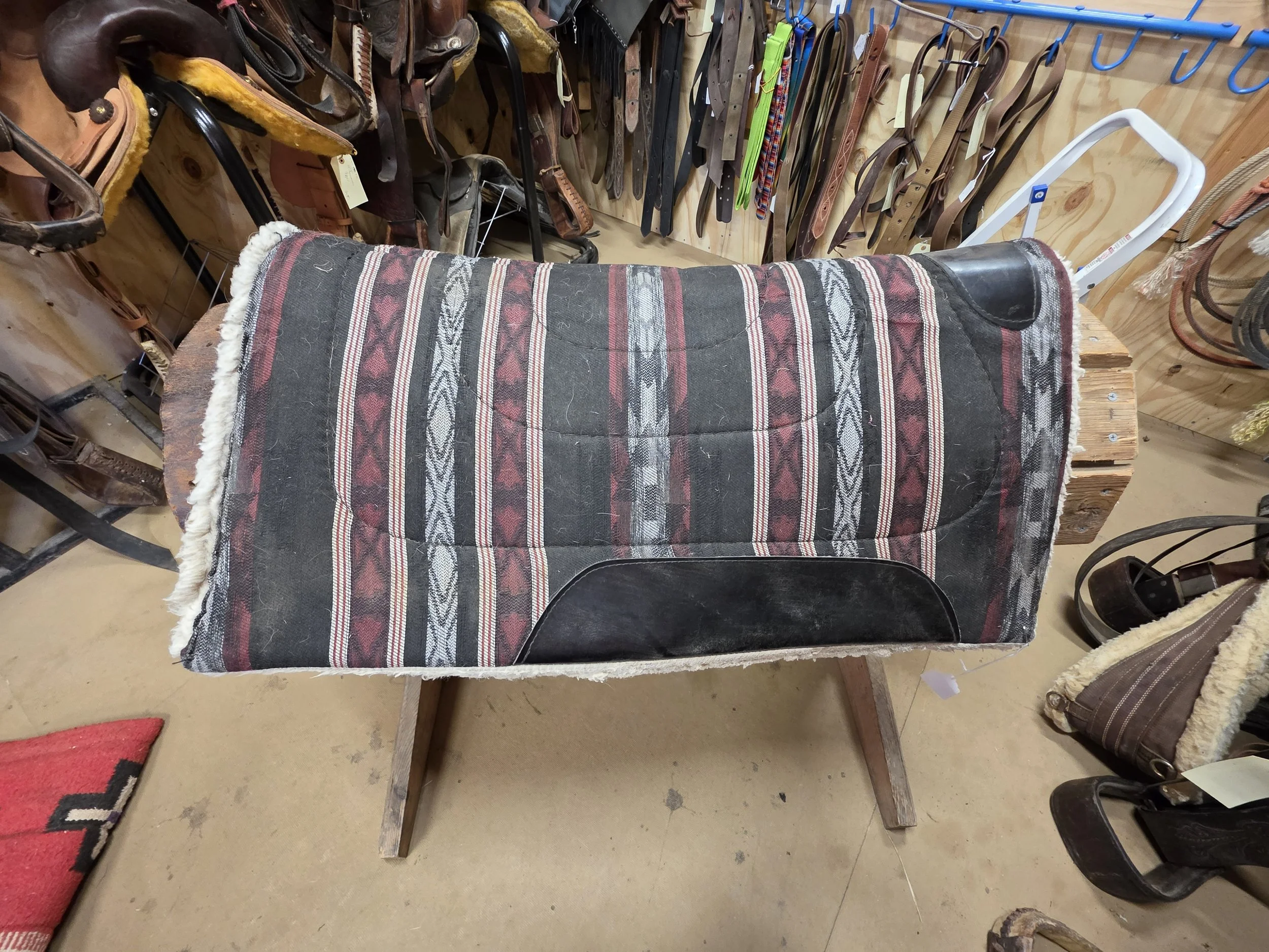 Saddle Pads › SP17 Image 1 of 2 Image 2 of 2 SP17 $15.00 Red and Black Santa Fe Style Saddle Pad 29”x32” Add To Cart Added! Red and Black Santa Fe Style Saddle Pad 29”x32”